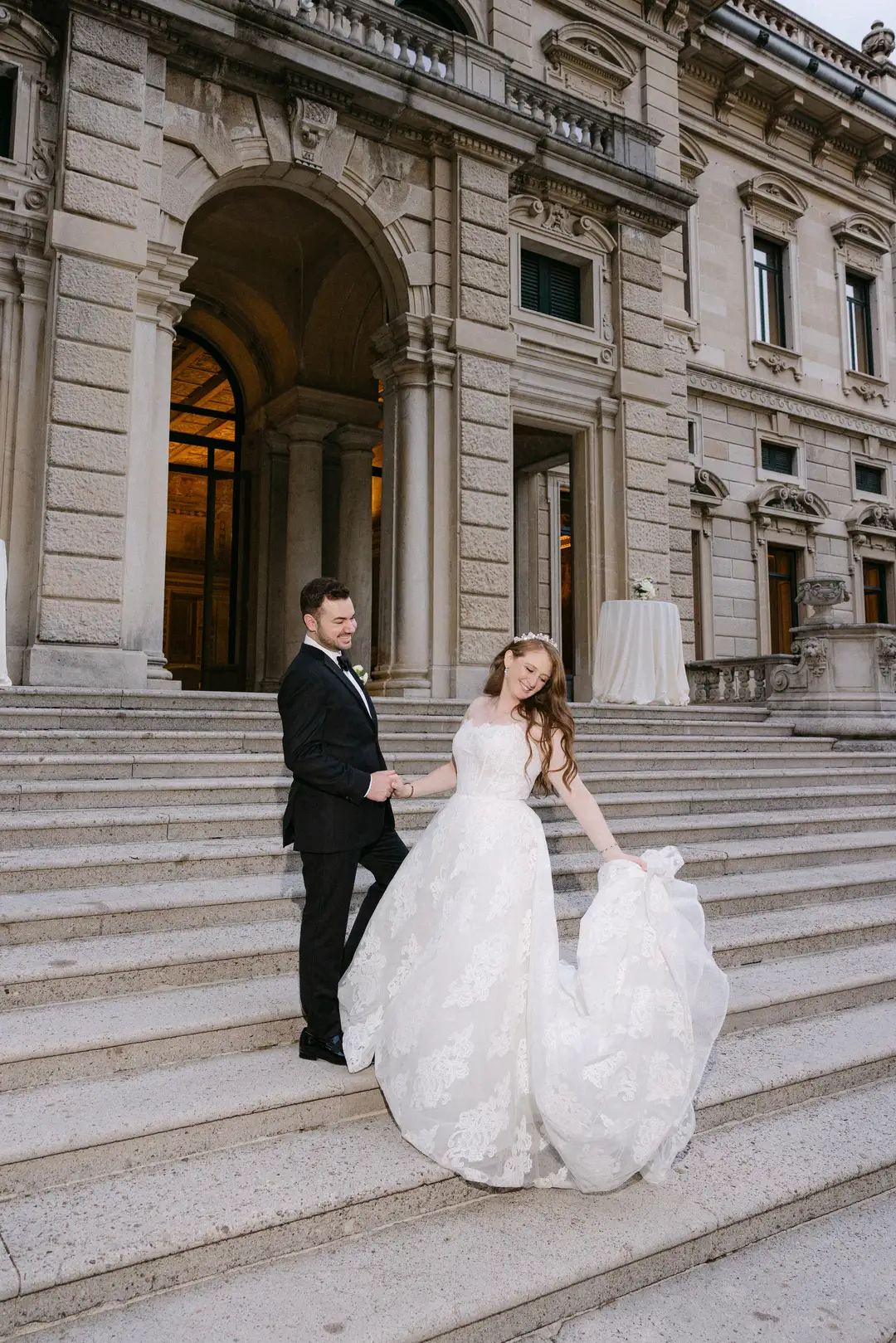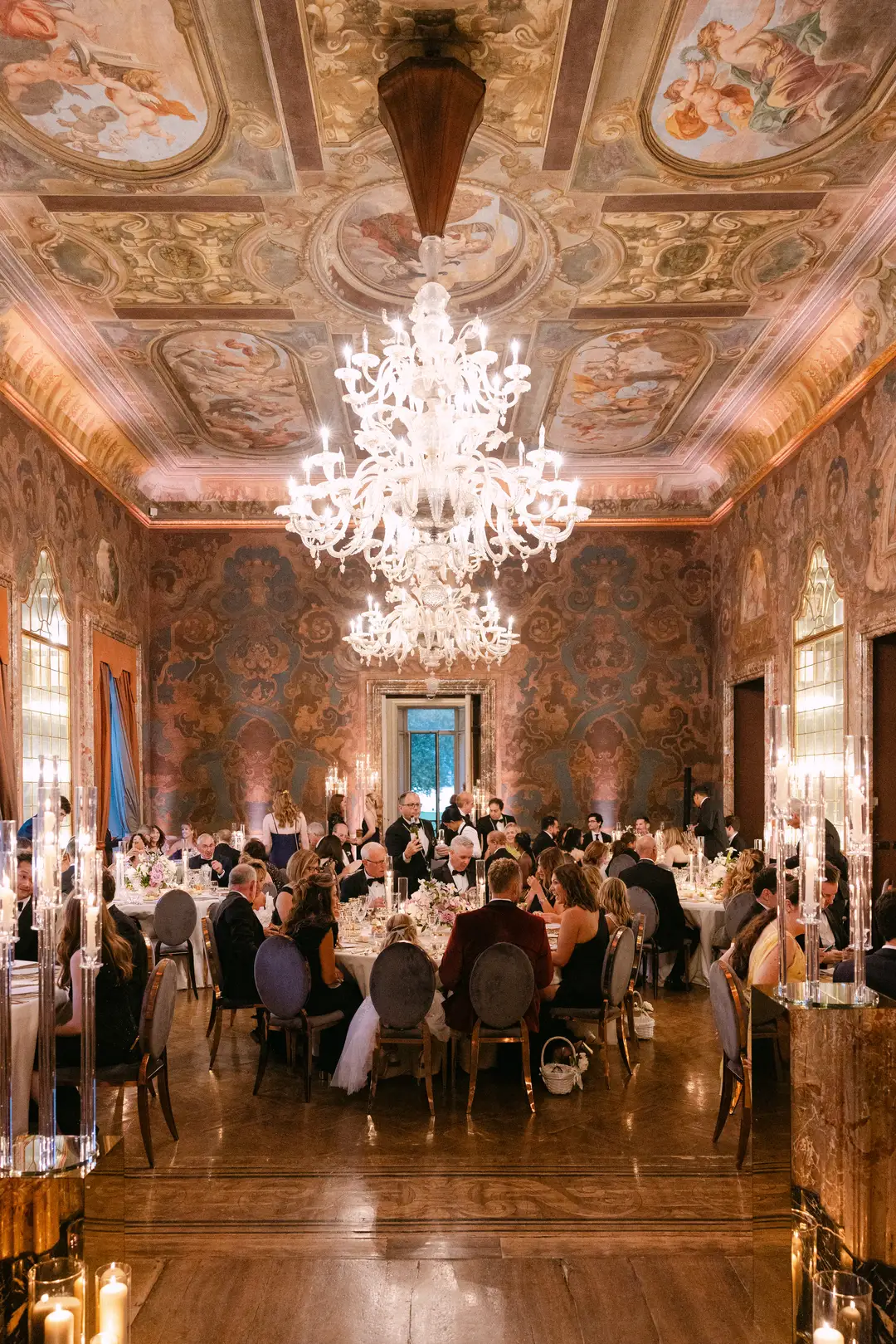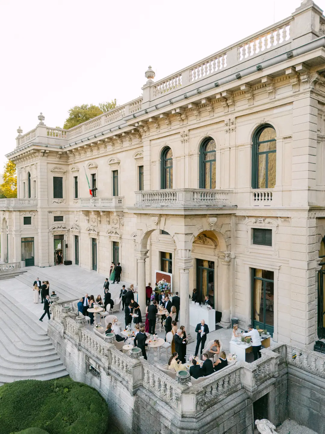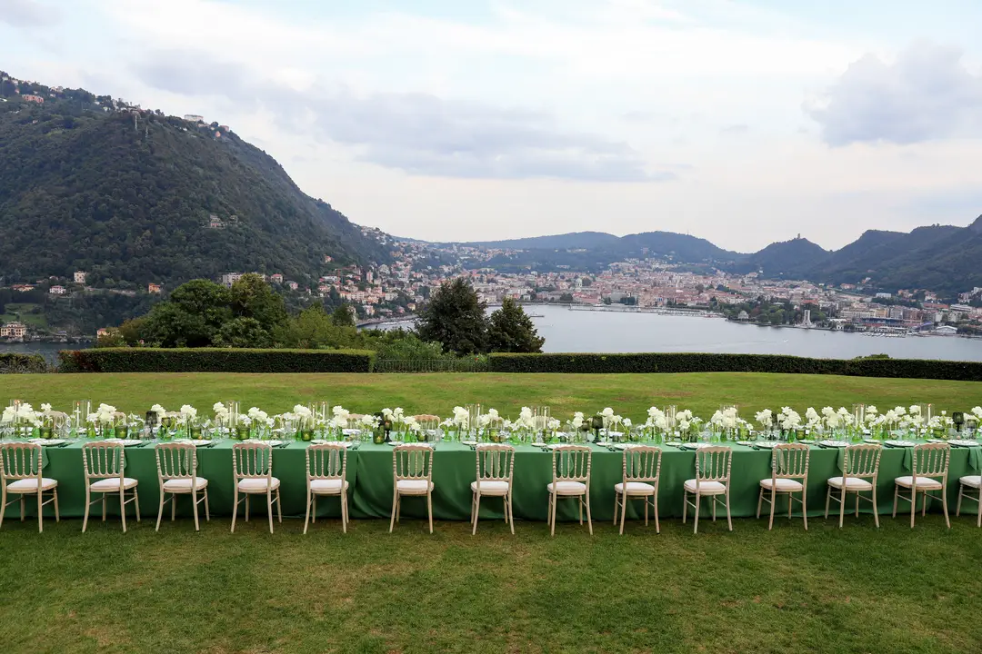 Lara and Brandon’s destination wedding took place at the iconic Villa Erba, a 19th-century landmark on Lake Como renowned for its timeless grandeur. Surrounded by expansive gardens and panoramic lake views, the historic villa hosted an elegant celebration inside the Sala Feste, where frescoed ceilings, candlelit tables, and vibrant florals set a romantic and artistic atmosphere. The evening unfolded with refined dining, live music, a striking cake moment, and dancing late into the night, capturing the essence of classic Italian sophistication.