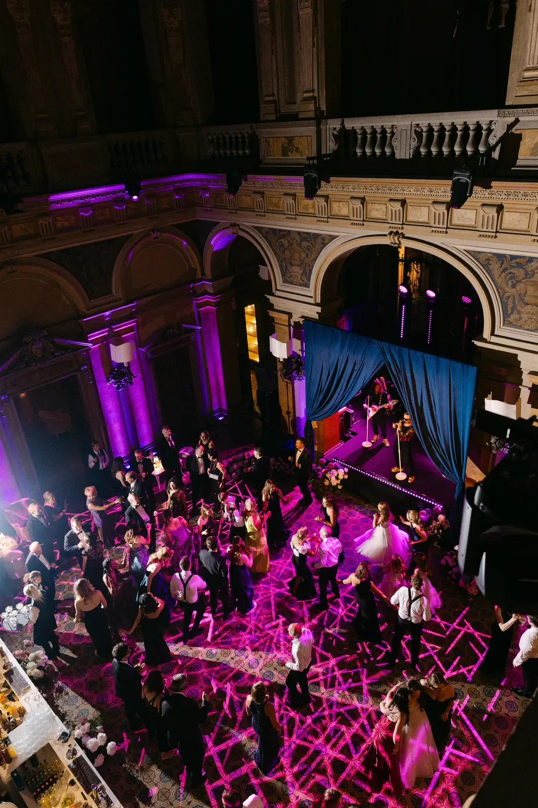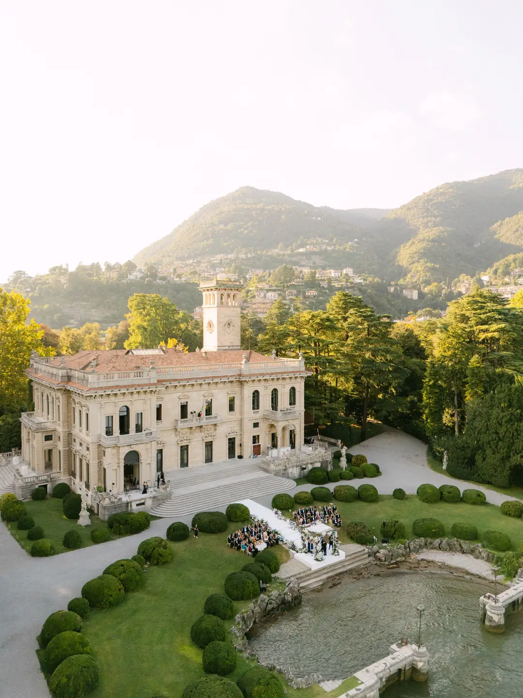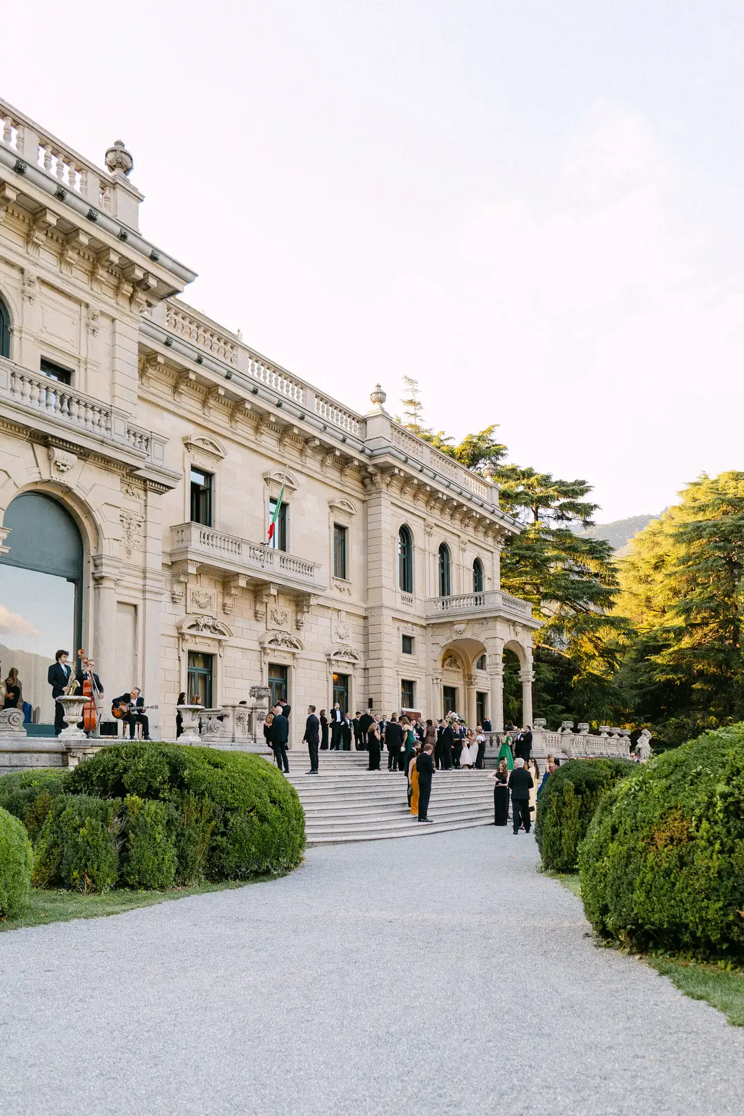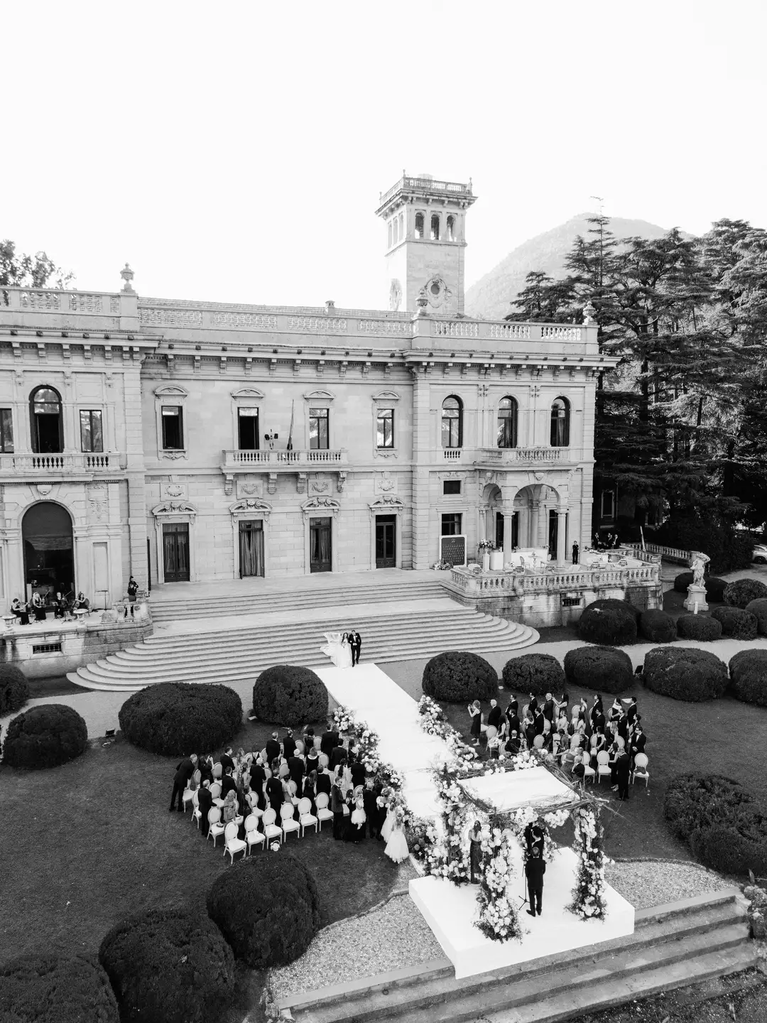 Lara and Brandon’s destination wedding took place at the iconic Villa Erba, a 19th-century landmark on Lake Como renowned for its timeless grandeur. Surrounded by expansive gardens and panoramic lake views, the historic villa hosted an elegant celebration inside the Sala Feste, where frescoed ceilings, candlelit tables, and vibrant florals set a romantic and artistic atmosphere. The evening unfolded with refined dining, live music, a striking cake moment, and dancing late into the night, capturing the essence of classic Italian sophistication.