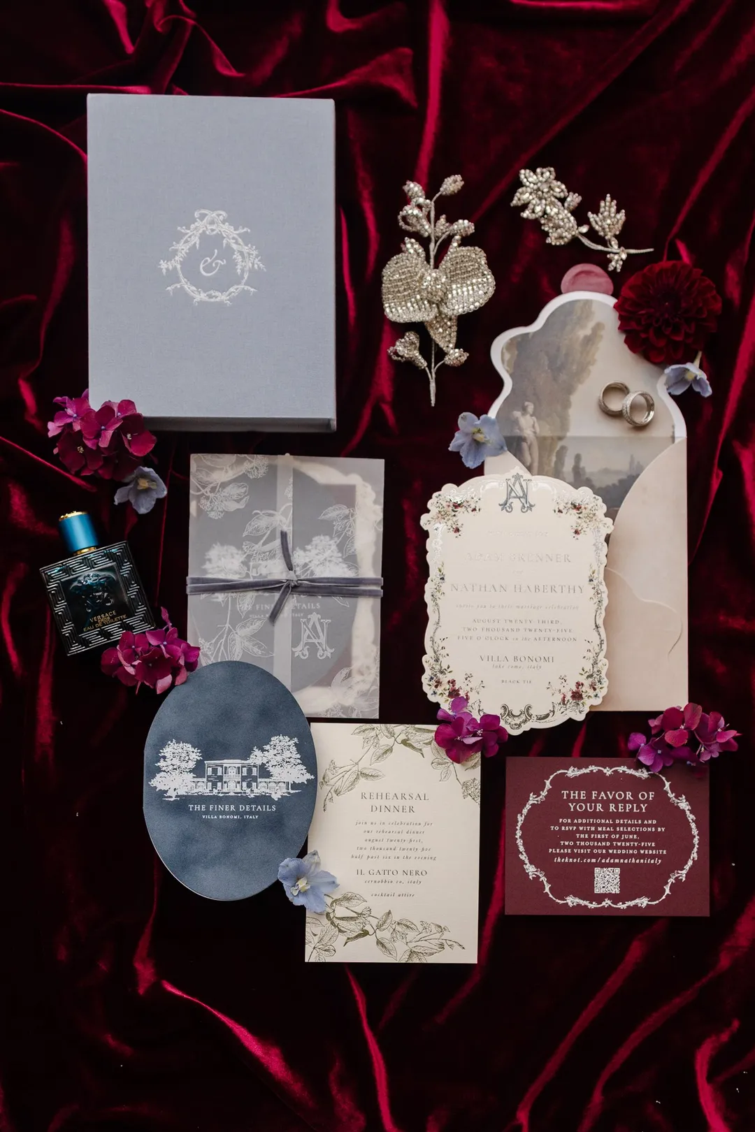 stunning Lake Como views. Every detail was curated with care, including custom ribbons with