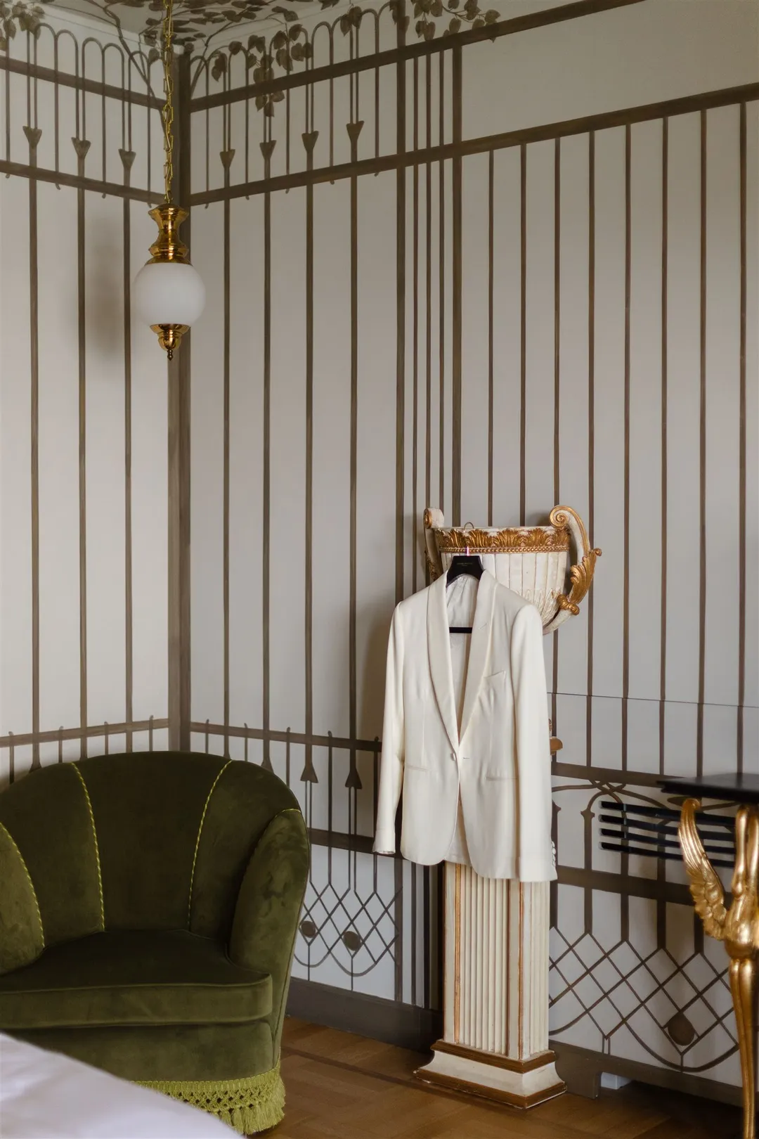 mirrored accents, creating a timeless yet contemporary European setting.